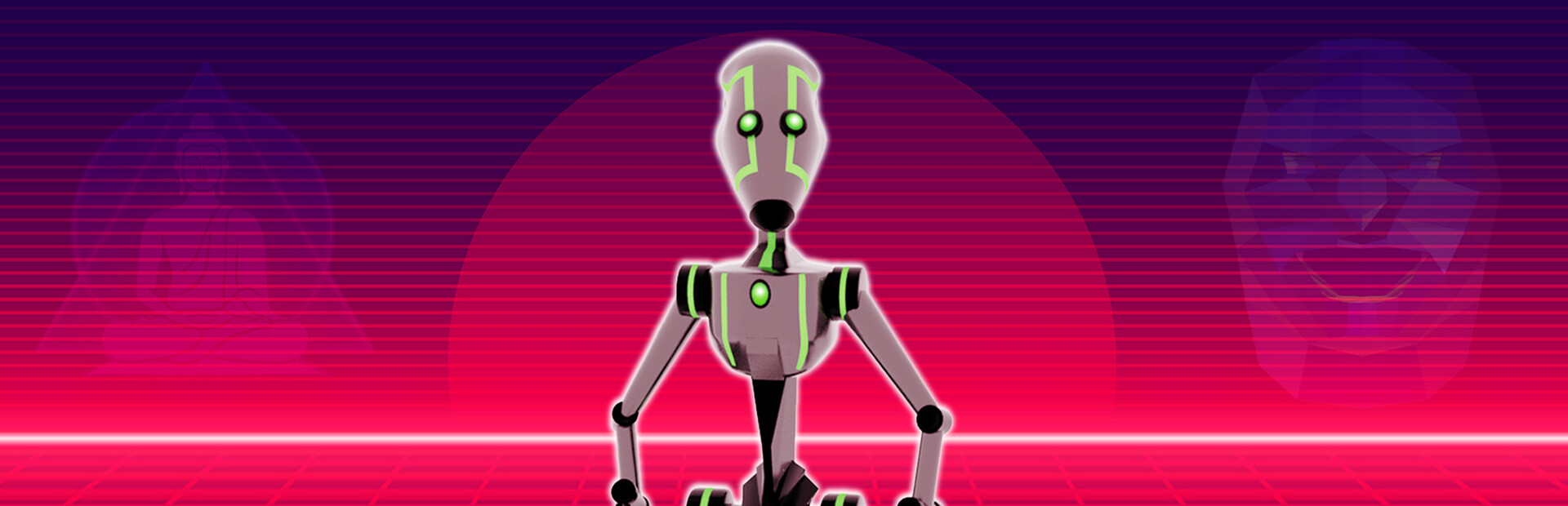 Explore a futuristic environment with synthwave aesthetics: Immerse yourself in a vibrant, retro-futuristic world that combines visual elements of synthwave.