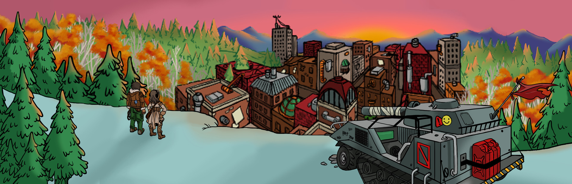 PANDO Engines is 2.5D, cooperative party game where players work together to create their own massive land engine. Enter post-apocalyptic British Columbia frozen in the midst of a nuclear winter. 100 years following the blasts, of 2178, PANDO’s (Population Assembly Nucleotide Development Organization) cloning facility opens, releasing the first wave of untouched humans since the nuclear war. Tasked by your creators with bringing order to the world, work together with your team navigating the hostile terrain in your mobile fortress. Weather the different pseudo-random threats by manning turrets, putting out fires, shoveling coal, repairing segments, and performing daily maintenance. How long will you survive?