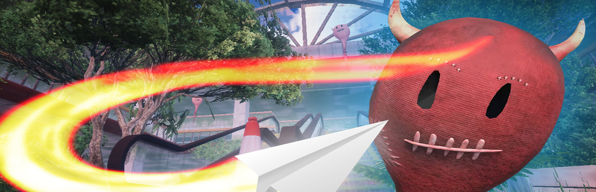 The normal balloons are soft and you can easily pop them by simply flying through them. The huge demon balloons on the other hand are somewhat hard and you are unable to destroy them by simply hitting them with your paper plane.