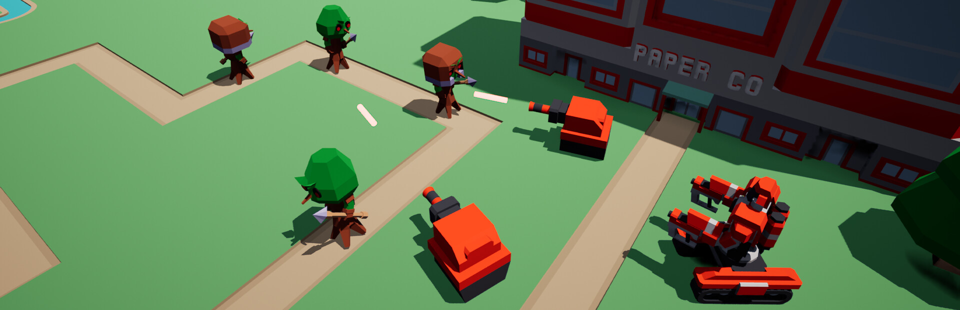 Paper Protocol is a Tower Defense game where you and a squad of high tech turrets are tasked with defending the Paper Co. building from angry trees! Control and upgrade a versatile mech and a variety of turrets to defend from the trees.