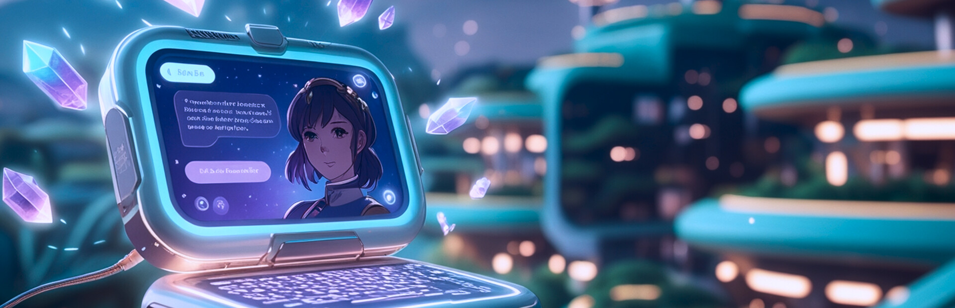 The first known dimension our mysterious conversationalists come from is Virelia. Full-on techno-nature: glass skyscrapers wrapped in green vines, rooftops turned into lakes, and bioluminescent flowers lighting the streets instead of neon.