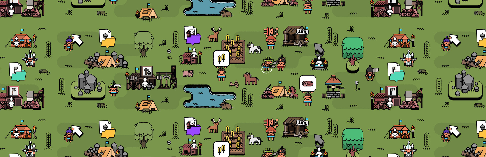 Settlers eat when they're hungry, sleep when they're tired, and need treatment when they’re sick. They act according to their desires, but when you assign them jobs, they work diligently, learning the necessary skills and growing in their roles. As settlers develop, they begin to desire more comfortable homes and tastier food. If these desires aren’t met, their mood may worsen, sometimes leading to crime or even leaving the tribe. They are simple, but they trust you and believe that as long as they follow your guidance, there will always be food in the storage and a comfortable home where they can rest.