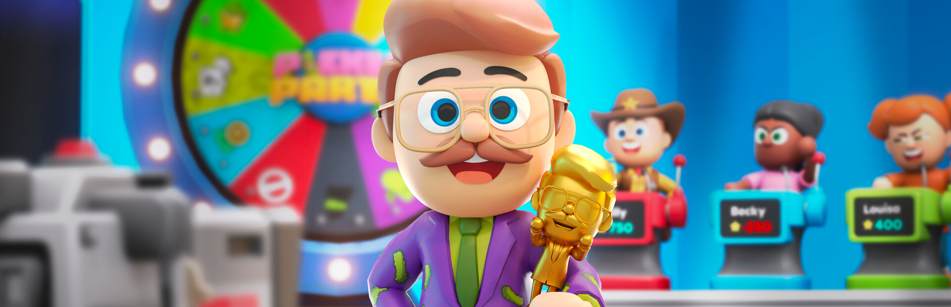 **Pickle Party is a multiplayer party game where up to four players use strategy, sabotage and a lot of luck to come out on top on a game show hosted by Dill Diamond!