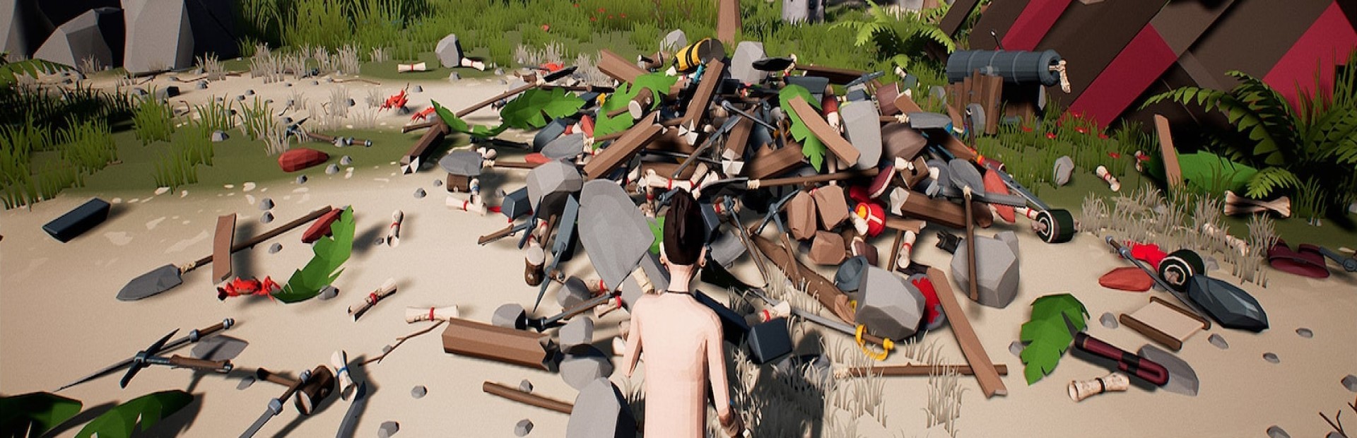 You will have to fight with the skeletons that chase you or even run away from them, collect all the items you can find, build a camp fire and cook some food. This will help you not starve! Build a hut because you will be staying on this island for a wile!