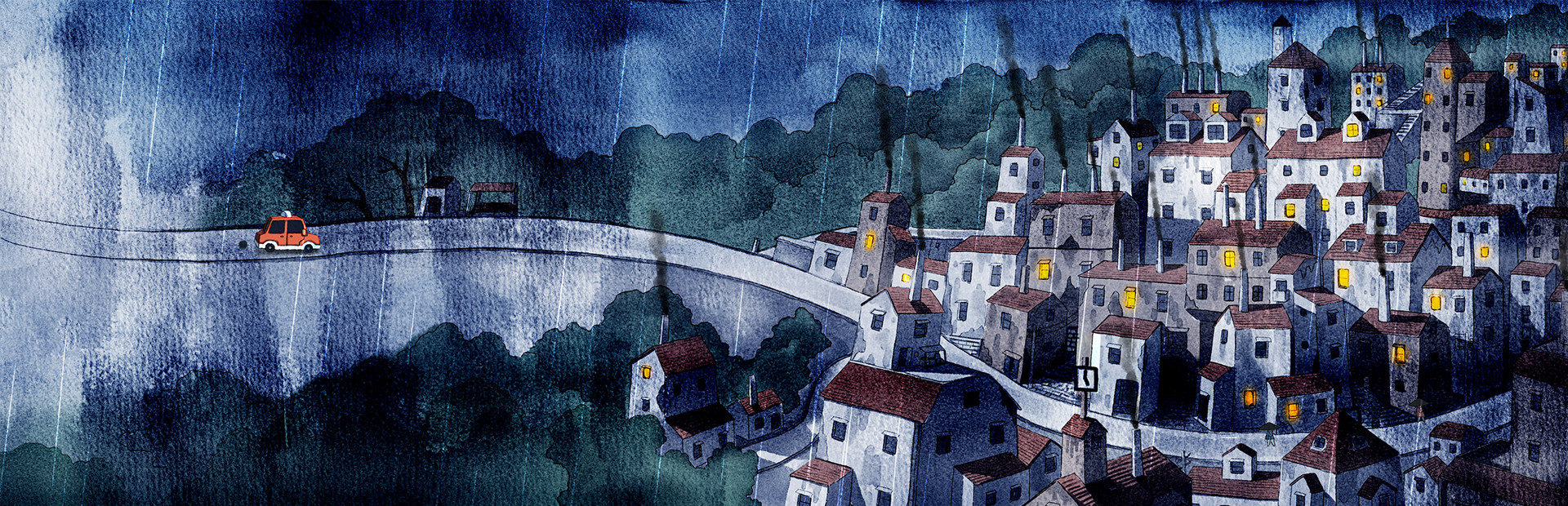 Rain City: a city where rain always pours. This puzzle game features warm, picture book-like graphics and a story with lifelike animals.