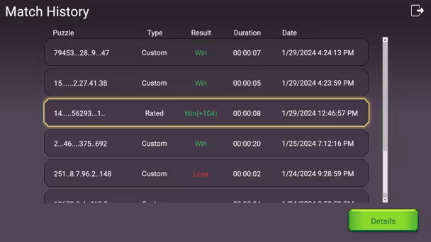 See the results of recent matches, see your win rate for a specific puzzle, and the personal record, etc. It's handy if you want to retry a previously failed puzzle, or if you want to break the personal record of a specific puzzle.