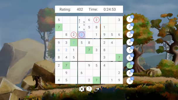 The Solving screen of this game has full functionality. And, compared with other Sudoku games, the keyboard input support is very good, which can greatly improve the efficiency of solving puzzles.