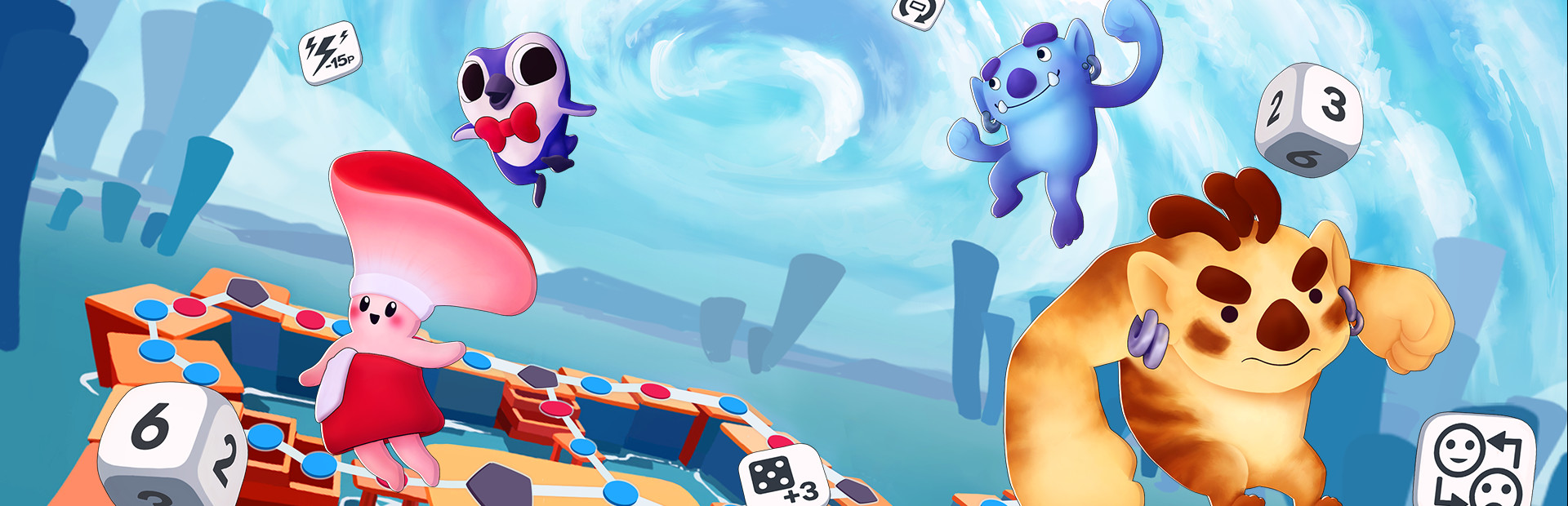 Anyone can join the party! Right Nice Party is playable both locally with multiple controllers or online. In fact, you can even mix the two! Two people can play on the same device while the rest of your friends join in online. Last but not least, Right Nice Party is fully cross-platform and will be released on computers, consoles and mobile devices. With a wide variety of options, you and your friends are sure to find a setup that works for you.