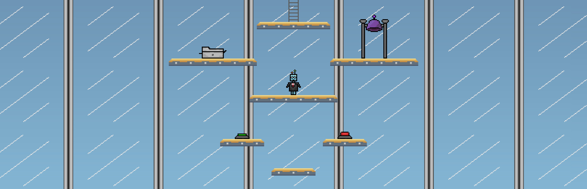 Beat puzzle levels in this 2D puzzle platformer! Start a level with a single M.A.R.C(M.A.R.C One), and start up other M.A.R.C's to help you. You can use their heads as platforms, use them to investigate otherwise unreachable areas- they can even control buttons and levers! Use your robots to help climb the Corporate Ladder to the next level and get all the way to the top to win!