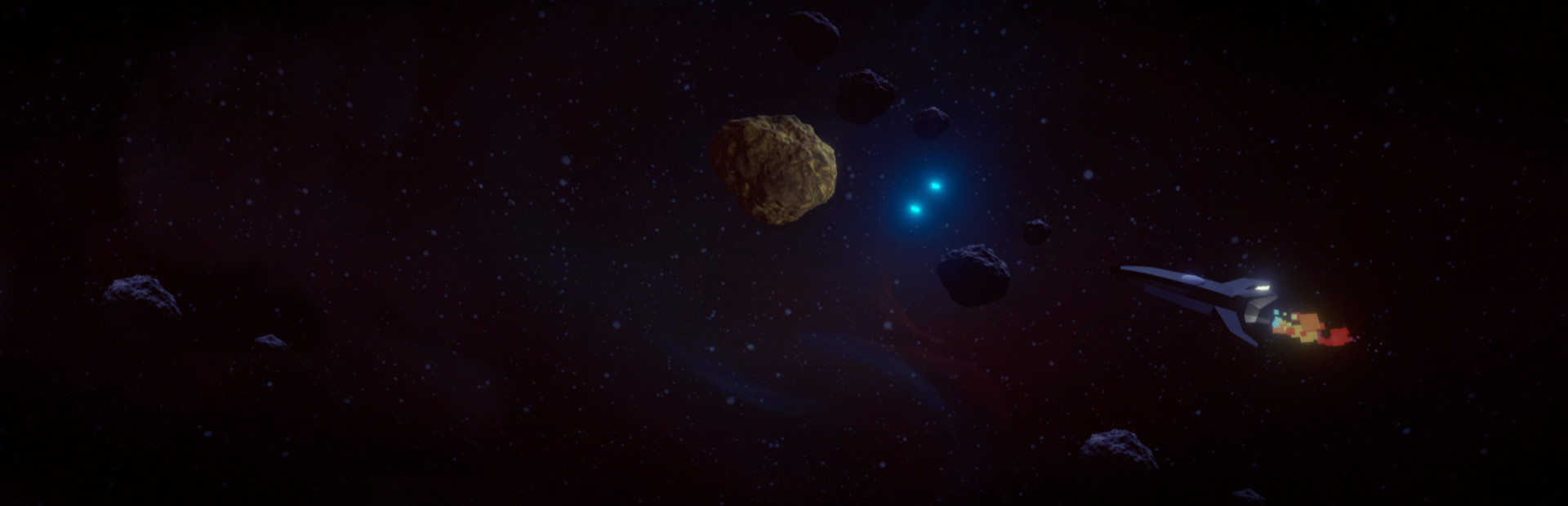 Use left and right arrows to turn your rocket, and give a boost with the up arrow. You can shoot projectiles with the spacebar, but you can destroy only the golden rocks and meteorites.