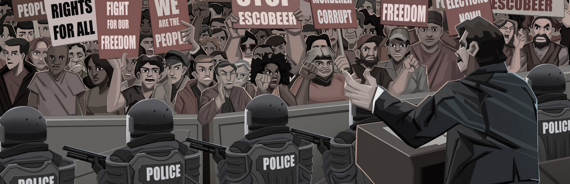 A wave of civil unrest ravaged the country after a rigged election put President Pablo Escobeer back into power. The government labeled the political opposition as ‘the enemy of the people’ and declared a national emergency to weaken any resistance. The ruthless president killed thousands by abusing his executive powers to use chemical weapons against peaceful protesters and rebels alike.