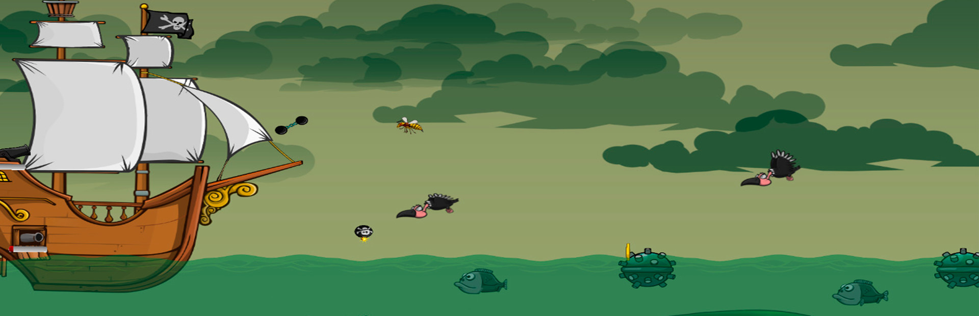 You have to take control of the pirate ship's guns and protect it from the attacks of various marine life, including traps. Earn coins and upgrade your ship to stay afloat for as long as possible. Knippels, scissor cannons, bombs and battering rams - you have many different pumping options in your arsenal.