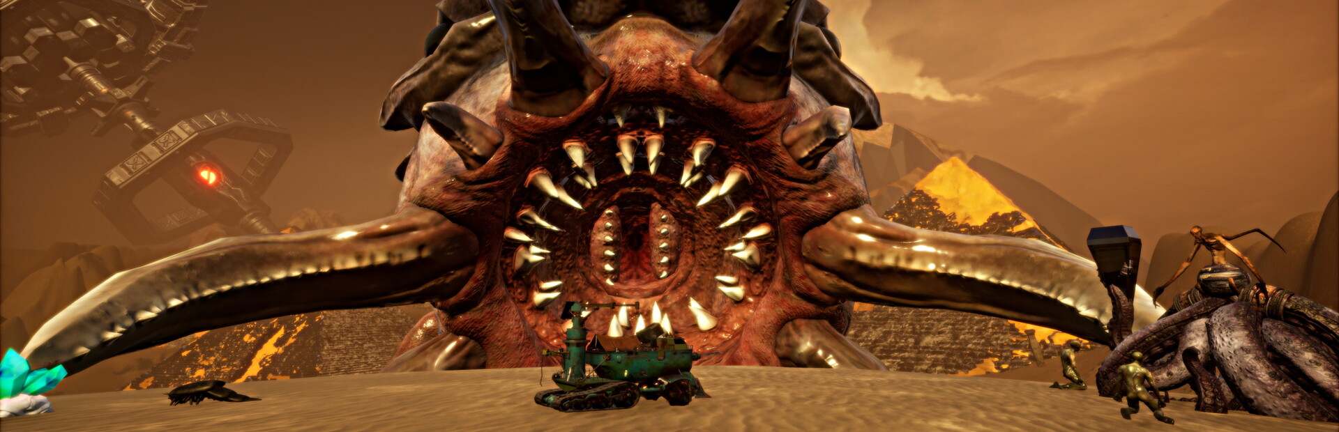 Get behind the wheel of a planetary rover and travel through ruins lost in the sands to discover what's hidden deep within the sand dunes. Sell your loot to the locals and fulfill their quests to learn about the crazy past of these places. Equip your transportation with advanced equipment to mine more gems and rare animal skins from the most hidden corners and reach the distant hills. But keep an eye on the time: you won't be happy with the fearsome creatures that may come to visit you under the cover of night...