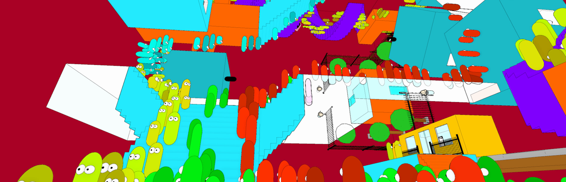 Sea of Minds is an immersive game in which the player moves through a crowd by slipping into the bodies of the people in it. Once inside a body, the player can see through its eyes, but cannot move freely and must rely on the person's movement to move forward. They can, however, move into the body of another person.