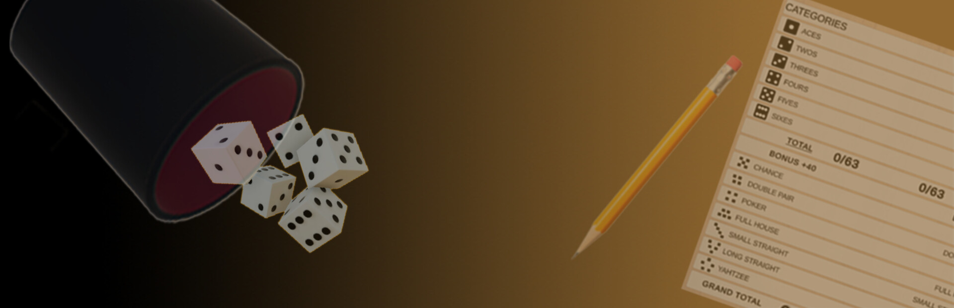 The aim of the game is to score more points than the opponent. There are 13 categories, and the player has a maximum of 13 turns in a game.