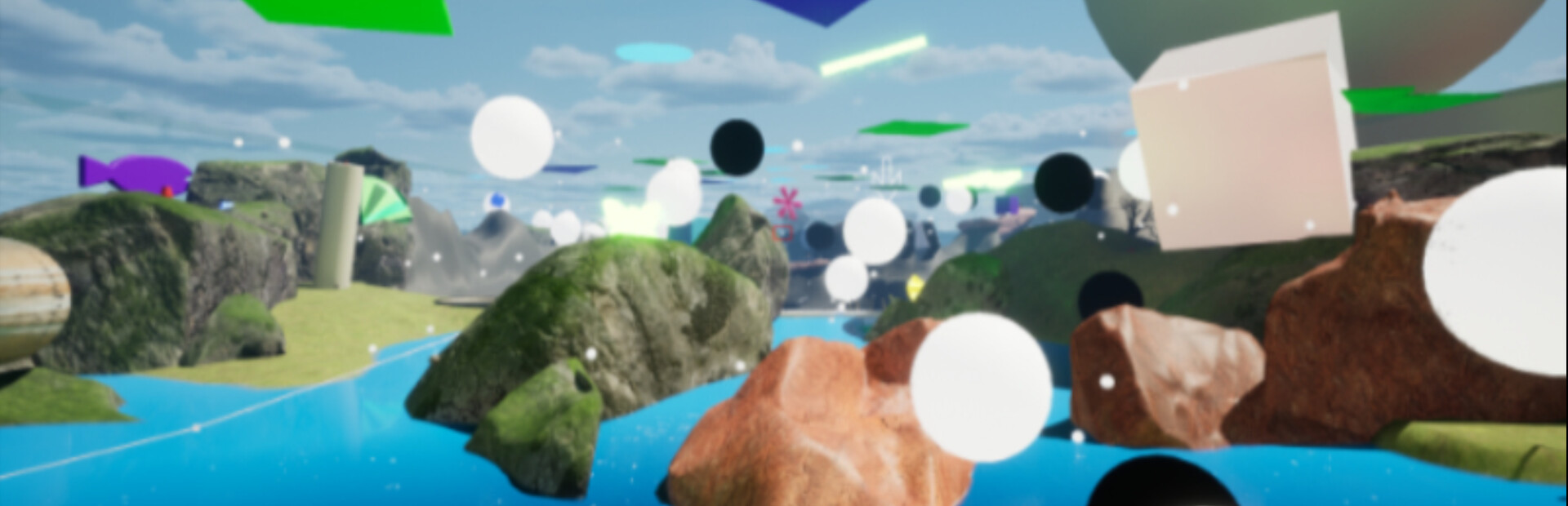 The entire game world is in a 'glass' box divided into quadrants by walls. You open PORTALS and lower WALLS to access new areas and change the landscape to reveal new treasures and portals. Eventually you find a way to the TOP of the game, outside the box, to WIN!