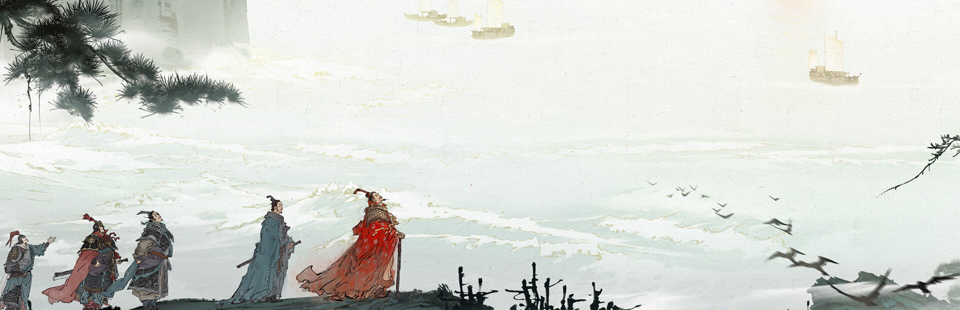 国画宣纸质感的场景,展祖国大好河山;工笔国漫风角色立绘,新派传统美;临场感十足的连环画剧情表演;诗词歌赋的书法之美,亦是三国。