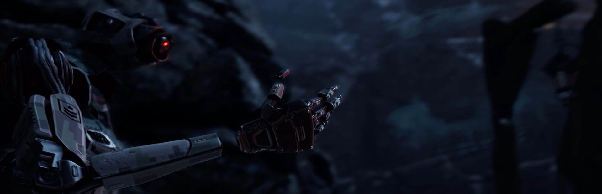 Sci-fi first person hack n' slash where you can block while attacking and platforming around enemies. Move backwards while attacking to gain distance and thrust into enemies for less chance of getting hit once your parry stock is depleted.