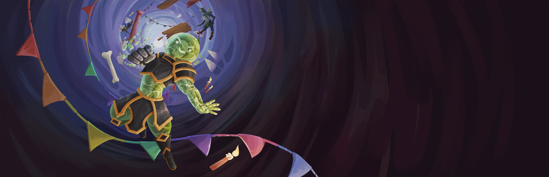 Swing your arm through hordes of enemies to damage them en masse. Punch creatures out of your way with your first. Or, grab them and throw them at their allies to really stir some chaos!
