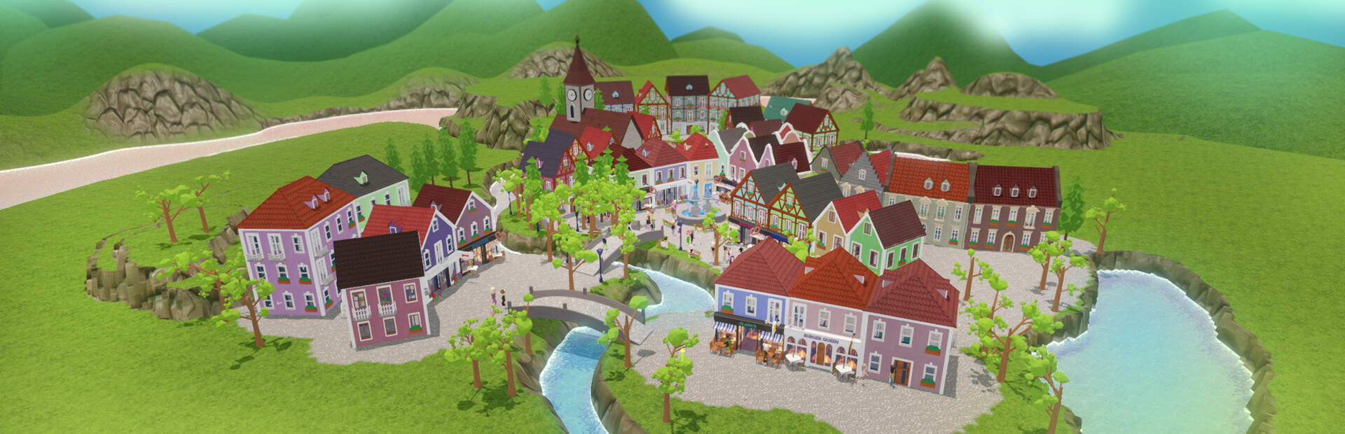 Houses are the fundamental building blocks of your town. With the click of a button you can generate unique houses in a variety of different architectural styles. Every house will look unique and there are plenty of customization options. There is no grid and almost no rules so you can be as creative as you like and build the town of your dreams.
