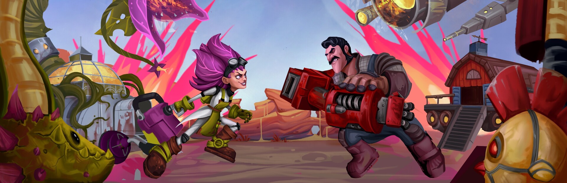 This is Solar Showdown - an edge-of-your-seat couch competitive game where you take on the roles of a farmer and a botanist, both harvesting solar power to build defenses and produce minions to attack your opponent's towers.
