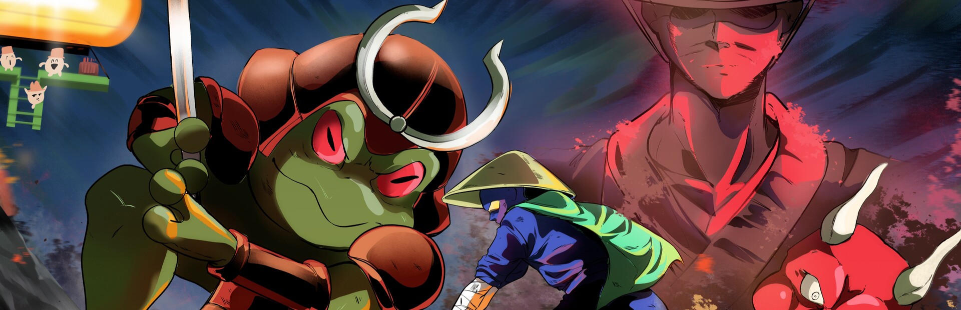 One player controls the agile ninja, navigating treacherous terrain, while the other becomes a ghost, possessing enemies to thwart the ninja's progress.