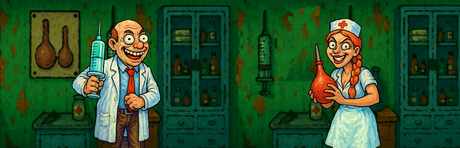 This game is entirely fictional. Any resemblance to real people or events is purely coincidental. Soviet Clinic doesn’t promote anything and is meant only as a lighthearted satire.