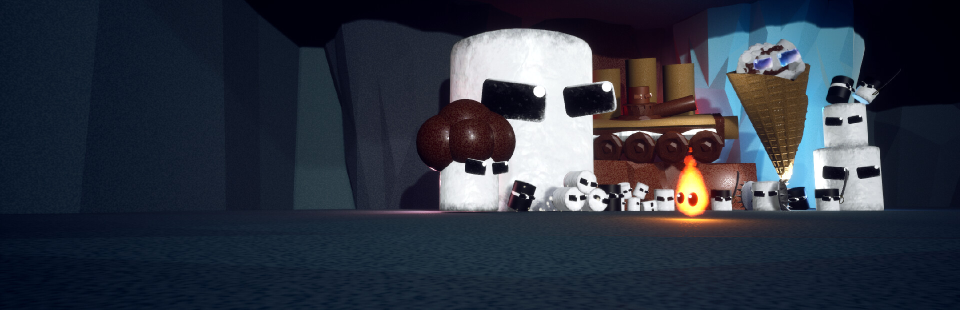 Spark Vs the Marshmallows is a 4 Player Plug-and-Play co-op/solo adventure where you fights marshmallows, save your fellow flames, and explore a variety of different environments and face off against music based boss battles! Overall this game is a mix of platforming, boss fighting, combat, and exploration! As you progress through each level, you encounter different types of marshmallows and find unique abilities!