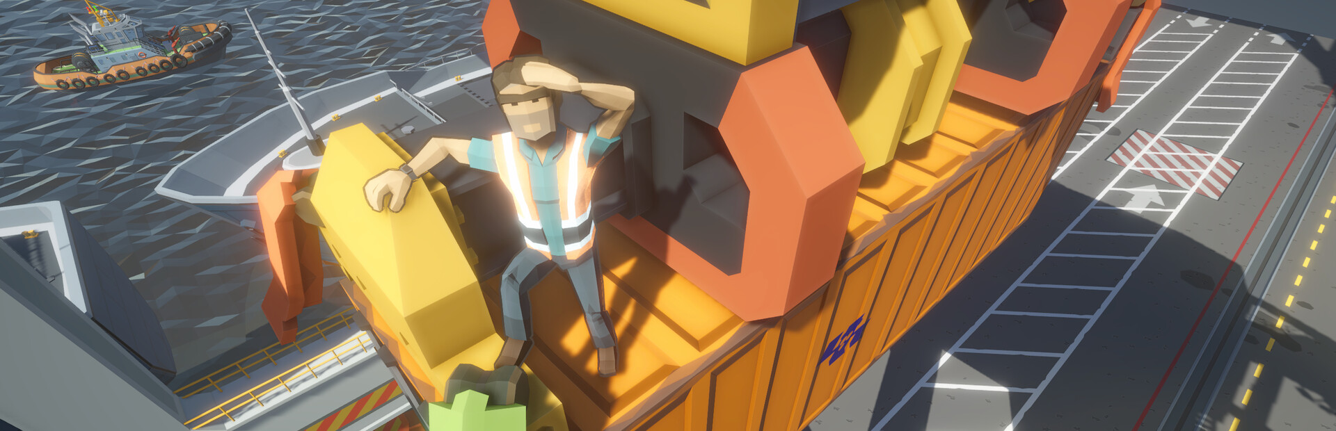 Shift that freight in a hurry without incurring disaster in this physics simulation action RPG. Pauly is an over-the-road trucker sucked into the world of the longshore industry. Learn to drive some of the oddest vehicles on the planet as you snatch up tons of goods destined for faraway countries. Keep that vertigo in check as you work from a bird's nest forty meters directly above your fellows. And it's going to take a little digging to solve the mystery of your overly friendly but strangely elusive cargo operations manager, the Stevedore.