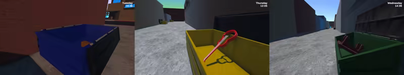 You can also find sellable items in dumpsters around the city. Every day, people throw away trash—or sometimes valuable goods. Yellow dumpsters are emptied on Tuesdays, green ones on Thursdays, and blue dumpsters on Saturdays. Explore before cleaning crews arrive—you never know what you might find.