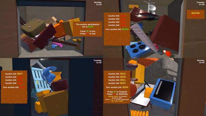 The city features four different storage zones, each offering fresh opportunities on specific days of the week. On their designated day, the units in that zone are put up for auction, and their contents are completely randomized. Keep a close eye on storage days and plan accordingly.