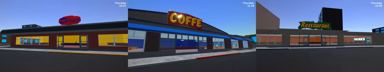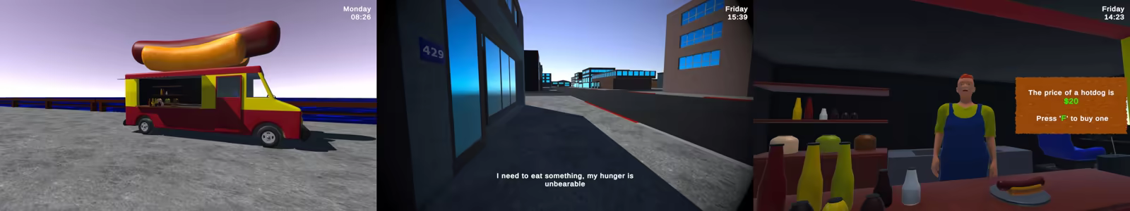 But don't worry; you can visit the Hotdog Truck at the dock to eat, take a nice shower at the hotel to clean up, or visit the hospital for treatment. Or, you can go to the Diner, Café, or Restaurant to enjoy better meals.