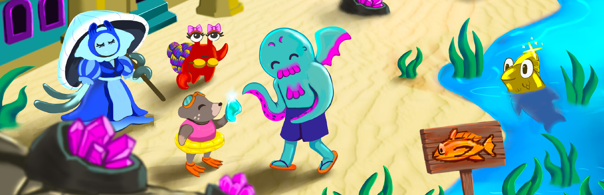 Strange New Tides is a quirky social sim game in which you’ll explore multiple areas of a town, collect geodes, gamble at a slot machine and play a fishing mini-game to earn sea glass to pay off your debt and upgrade your humble sandlot home into a true sandcastle. For lovers of games like Animal Crossing, Strange New Tides offers a heartwarming story with two endings, memorable characters to fall in love with, addictive mini-games and personal expression through home building!