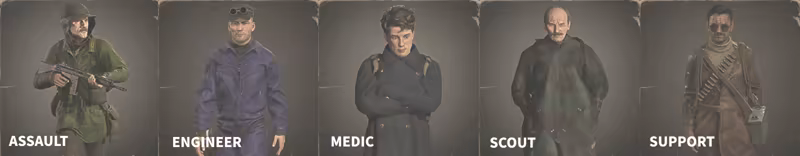 Choose between five distinct roles, each with its own specific equipment. The roles include Assault, Engineer, Medic, Scout, and Support, each plays a vital role in the team's success.