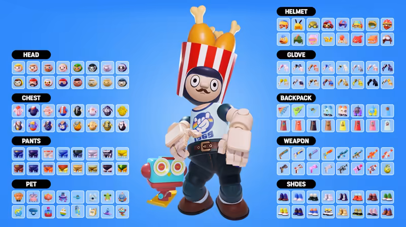 Customize your unique character with over 1,000 parts, emotes, and actions—including tops, bottoms, hairstyles, hats, shoes, weapon skins, pets, and expressive emotes.