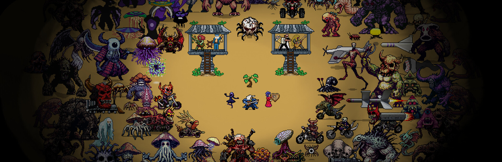 Level up your stats, abilities, and buildings in between runs. Play all found musicians and assign them to buildings – to defend, raise stats and unlock new abilities! Each musician has different effects on the buildings.
