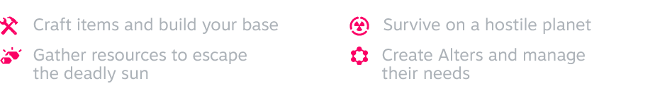To operate the mobile base, you’ll need to explore the planet’s surface in search of precious resources, like metals and organics. Yet venturing outside the safe haven comes with the risk of exposing you and your Alters to various deadly anomalies as well as the ever-present radiation of the sun. That’s why you must pay attention to the in-game day and night cycle and plan your daily activities wisely!