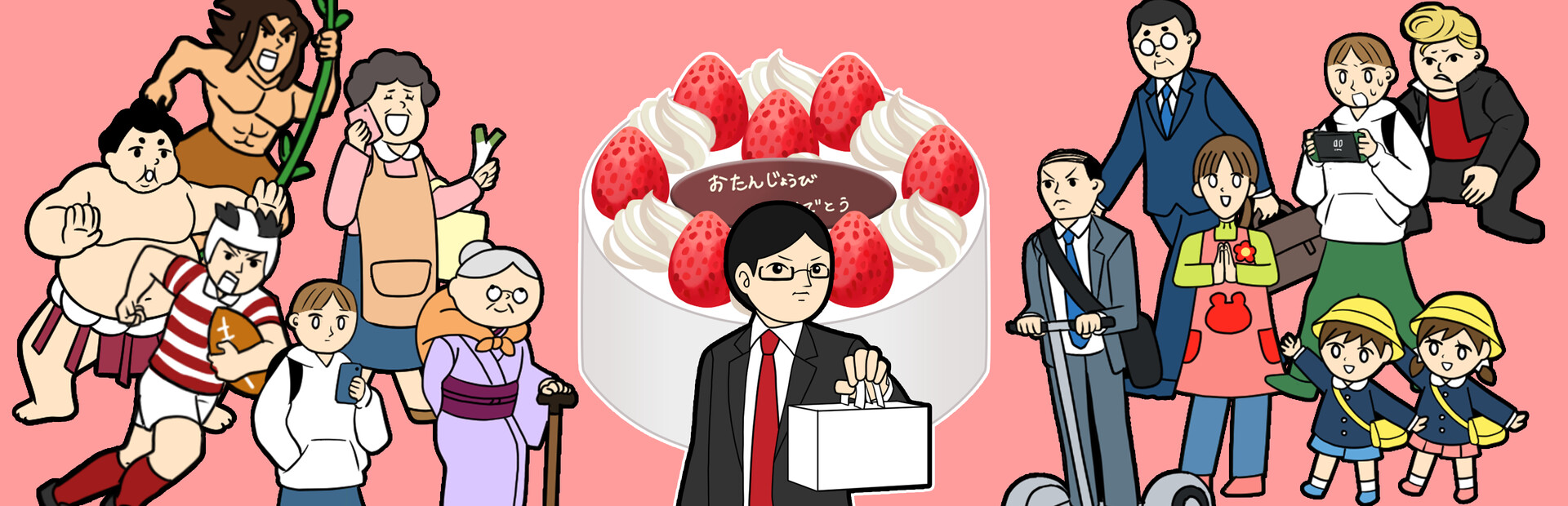 Annoying passersby are blocking Dad's path to bring home his birthday cake! ?