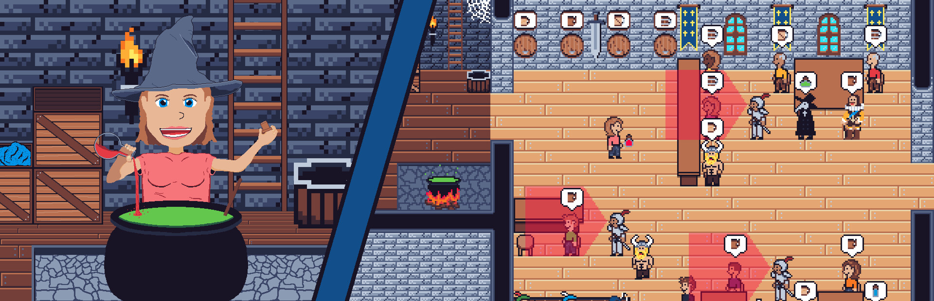 In a kingdom that has outlawed potion making, an herbalist turned brew-master continues to sell potions on the underground market from the back of their tavern. Serve both ale and potions to customers, but don't get caught selling potions when the guards make their rounds!