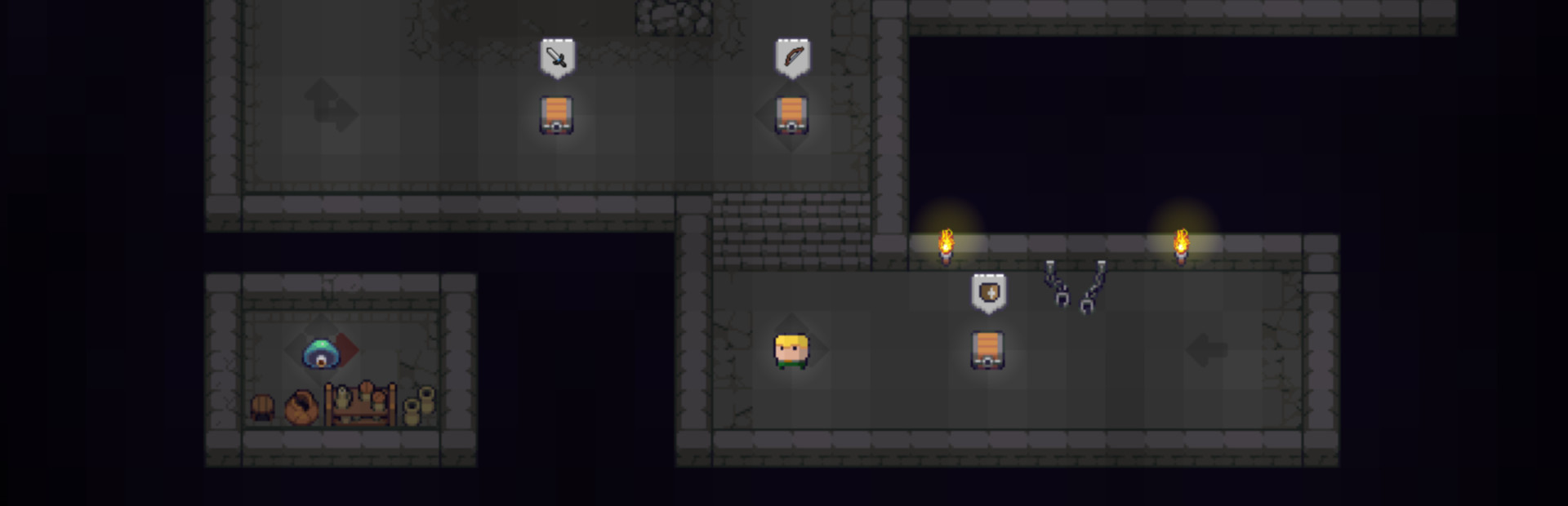 Different types of items to defeat enemies like swords, shields, bows...