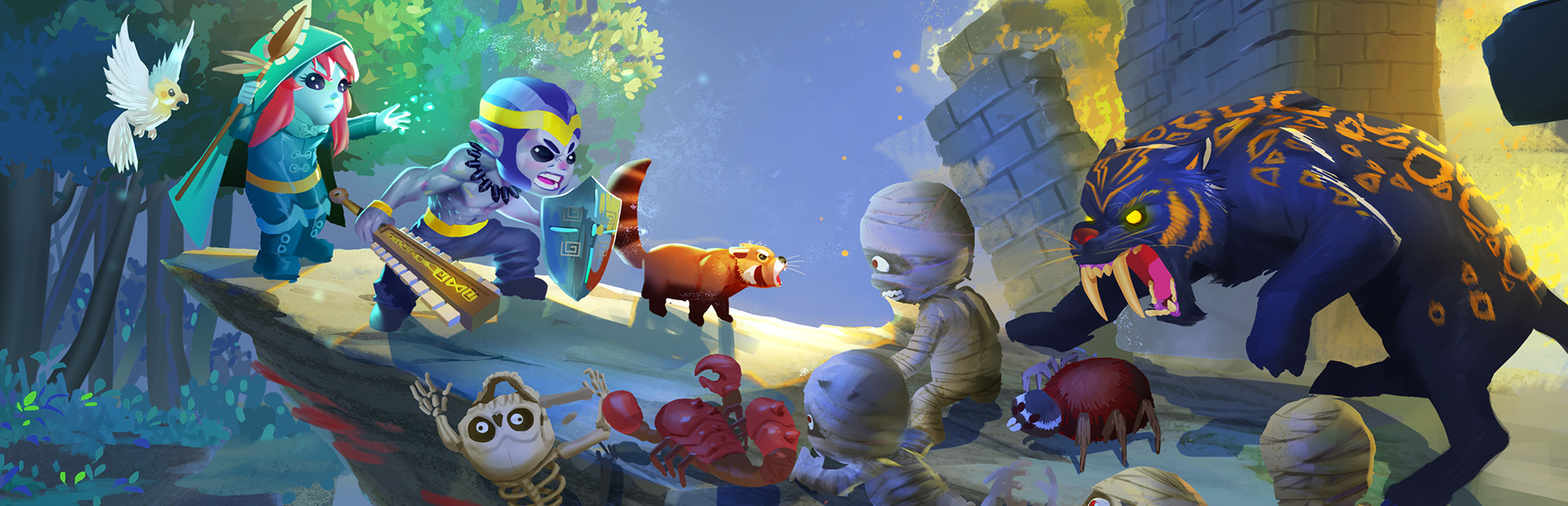 Helpful allies: Besides enemies and monsters to slay, you will also encounter many unusual temple inhabitants who will aid you in your quest. Befriend the ‘see-in-the-dark’ sheep, the lost panda, the eccentric bird, and the ghost archeologist.