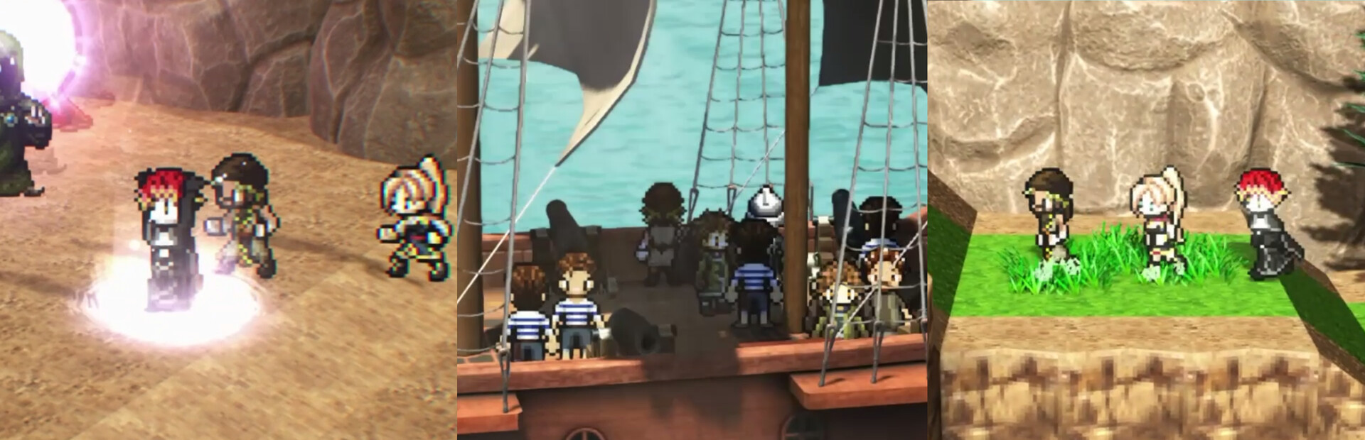 An HD-2D-style fantasy RPG featuring a 3D world and 2D characters.