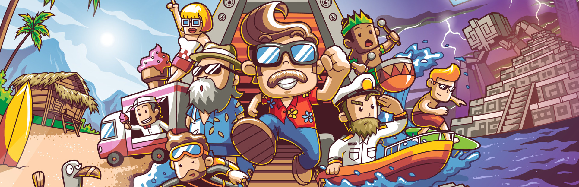 You are just arriving at the Monument Islands. Want to go swimming? Or rather take a dive into the deep sea? Or do you want to visit the amusement arcade, do some shopping, dance at the beach party? Fancy some surfing? Or will you talk with the strange old tourist and listen what he has to say about these ancient mysterious monuments..