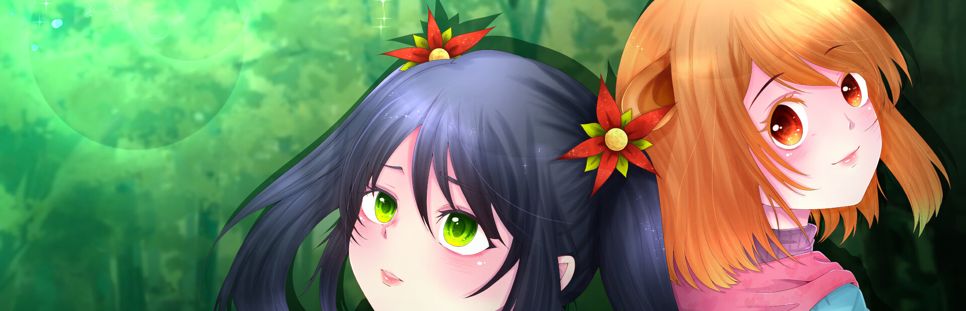 - Cute main characters in anime style