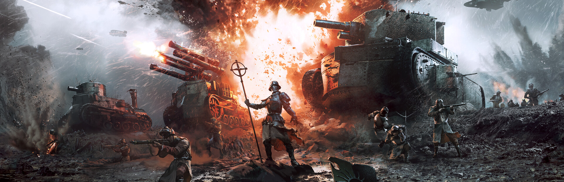 The theocratic Sacrum Imperium, led by the Novissima Ecclesia, is a fanatical faction that overwhelms its enemies with sheer firepower and super-heavy "Cataphractus"-tanks.