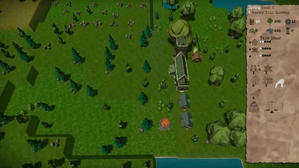 Each building placement spends a week, and the passing of weeks leads to the passing of seasons. Build placements can be undone and retried within a season to maximize gains. Importantly, some building arrangements trigger bonus structures, generating extra resources, and creating a multitude of possibilities for any given turn.