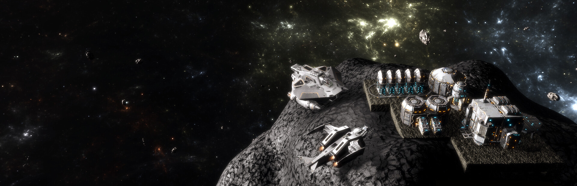 On the asteroids, build your first generators, start refineries, explore asteroids and extract resources necessary for survival.