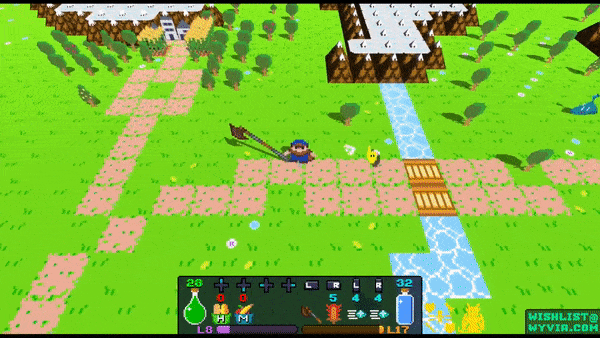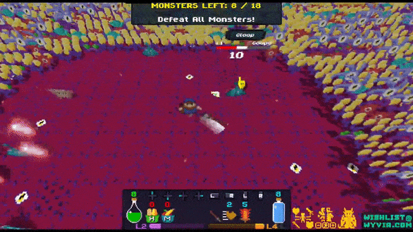 Wyvia features fun and simple combat that feels good to utilize! Whack Goopies with a huge axe or fire away with screen clearing abilities!