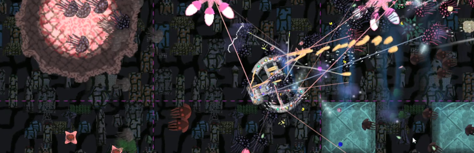 These machines build defenses for their machine cities. There are huge city walls, flying machine jellyfish and machine defense towers. Once you get close to Machine City, you'll face increasing waves of enemies.