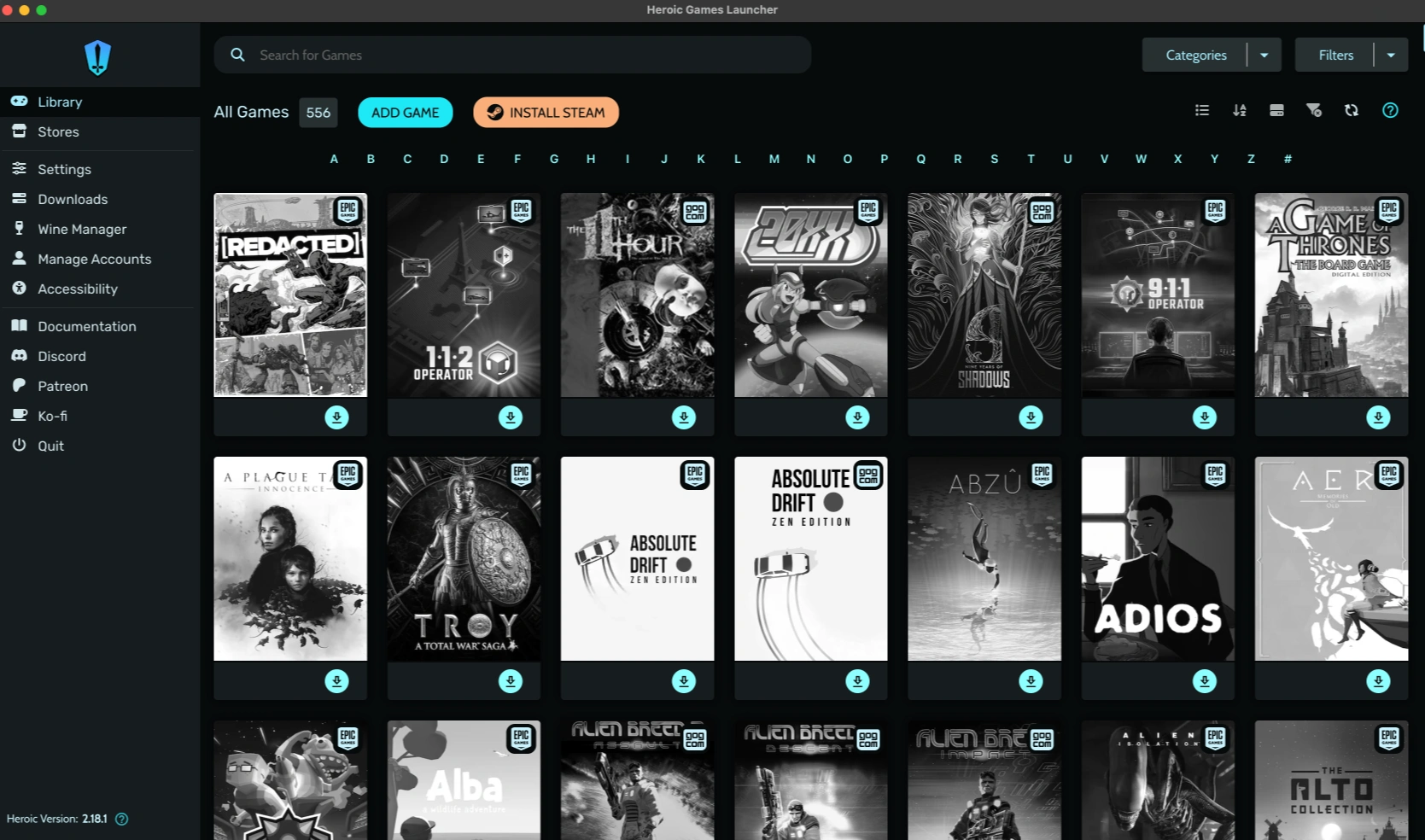 Heroic Games Launcher is a free and open-source application for playing Windows games on macOS. It supports games you own on Epic Games, GOG, and Amazon. Heroic is a great alternative to CrossOver, although slightly more complicated. You log into your Epic Games and other accounts and it displays all of the games that you own. From there you can install the game and pick which version of Wine to use to play it. This is useful if you don't want to pay for CrossOver or you're unable to get games to work any other way.